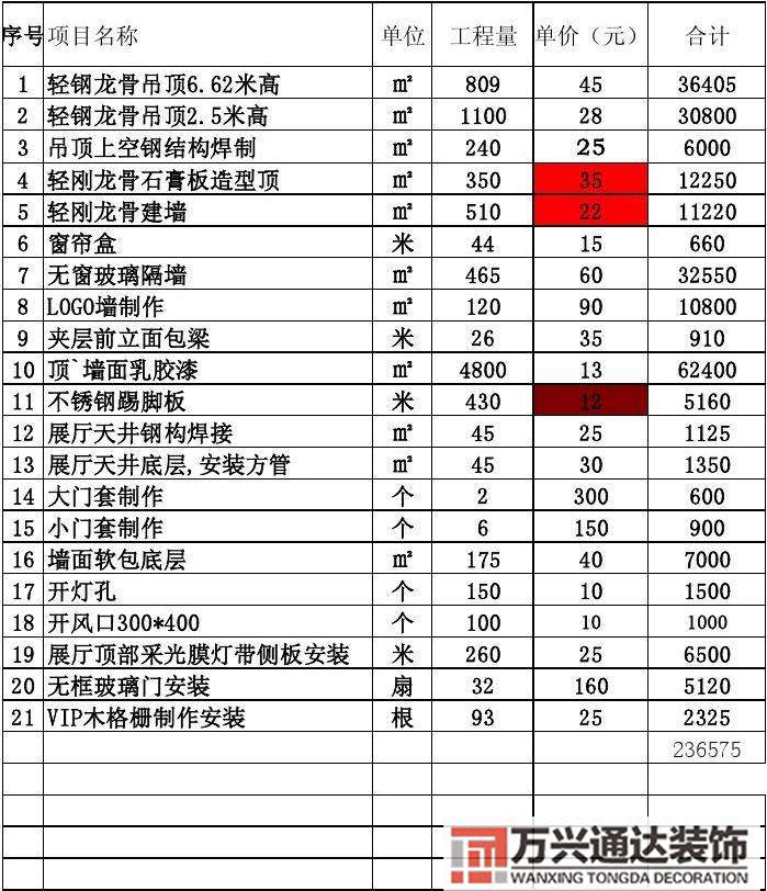 • 關于連鎖店鋪統一裝修報價單的信息